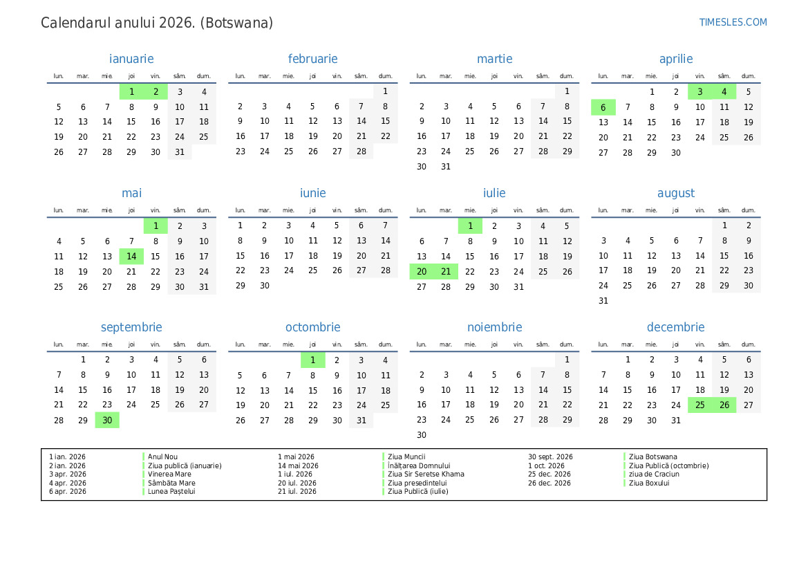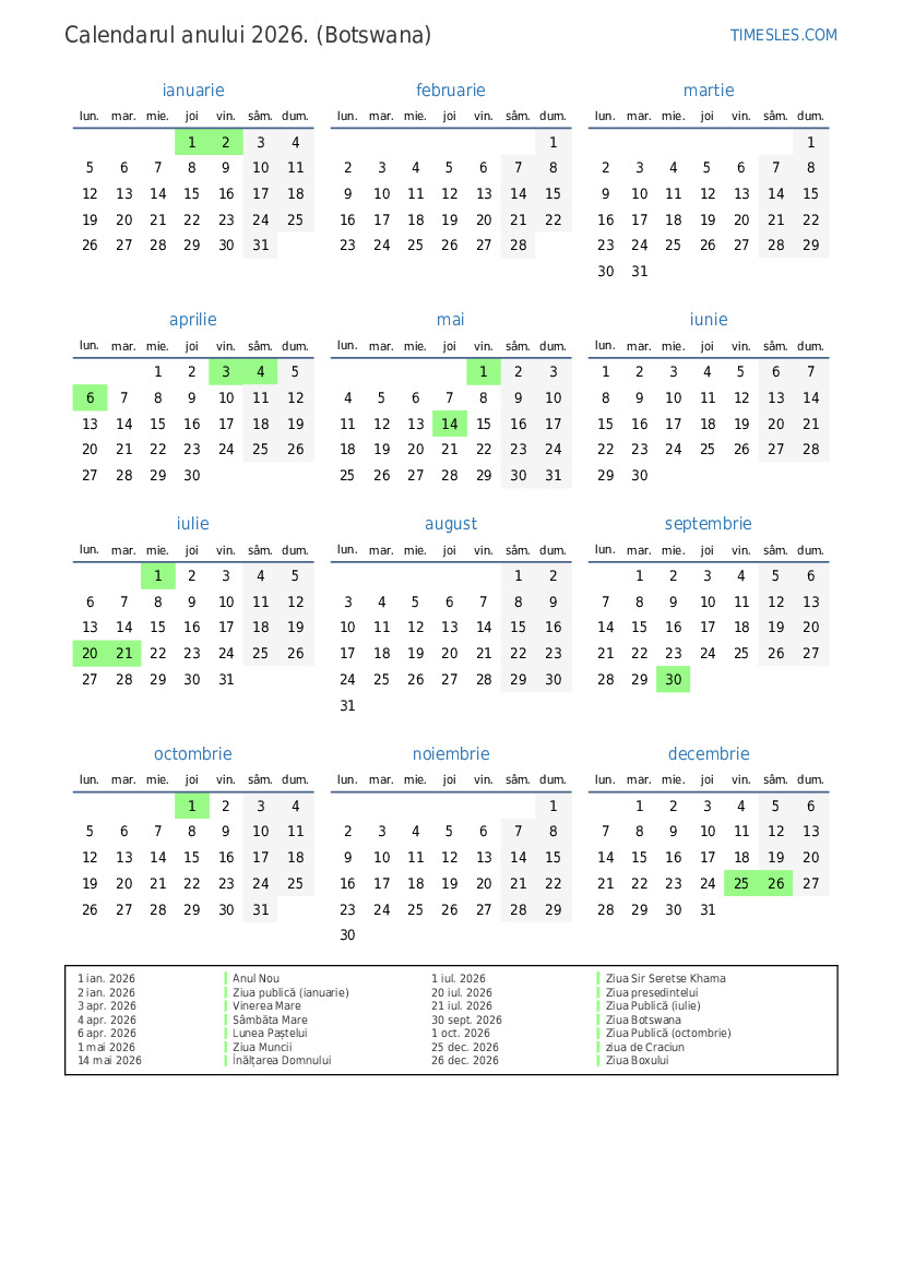 30 sept. 2026 Ziua Botswana
