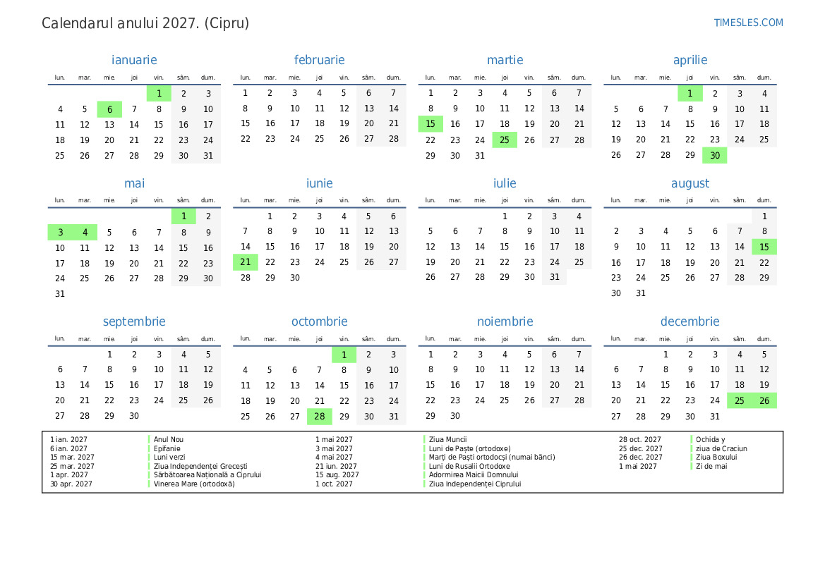1 apr. 2027 Sărbătoarea Națională a Ciprului