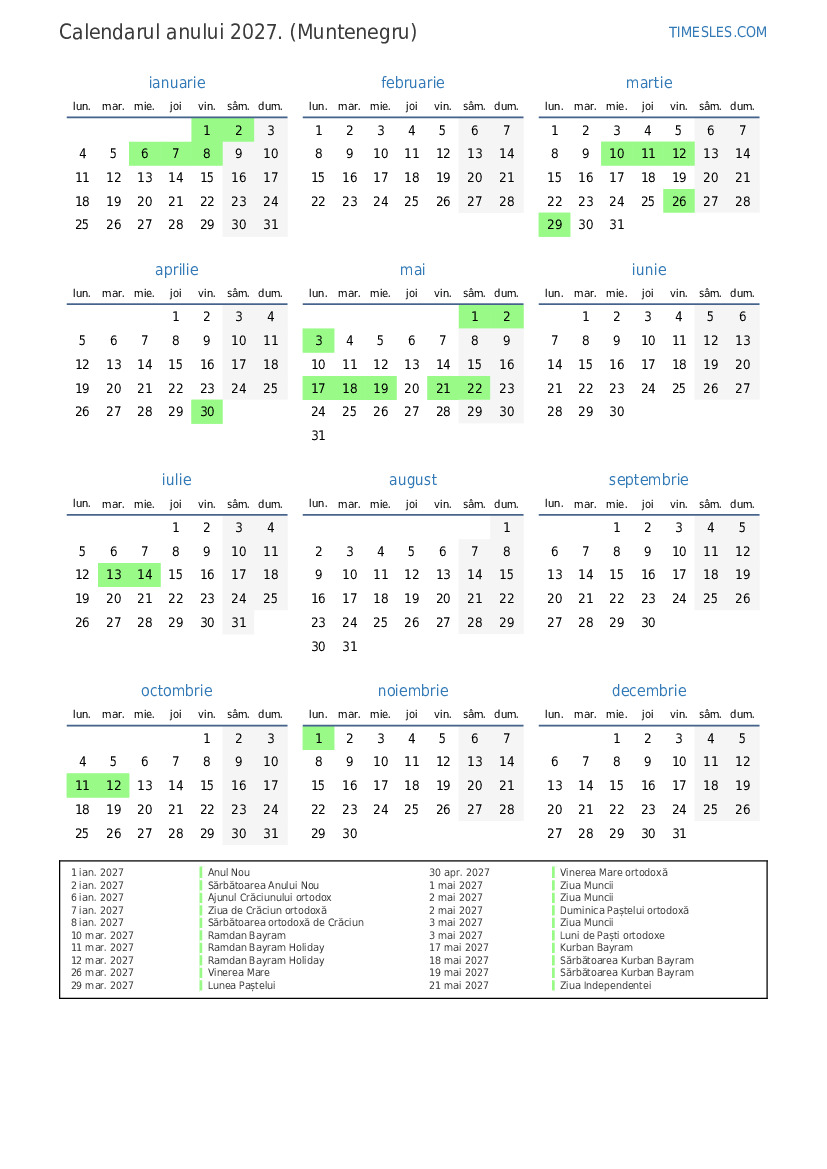 11 mar. 2027 Ramdan Bayram Holiday