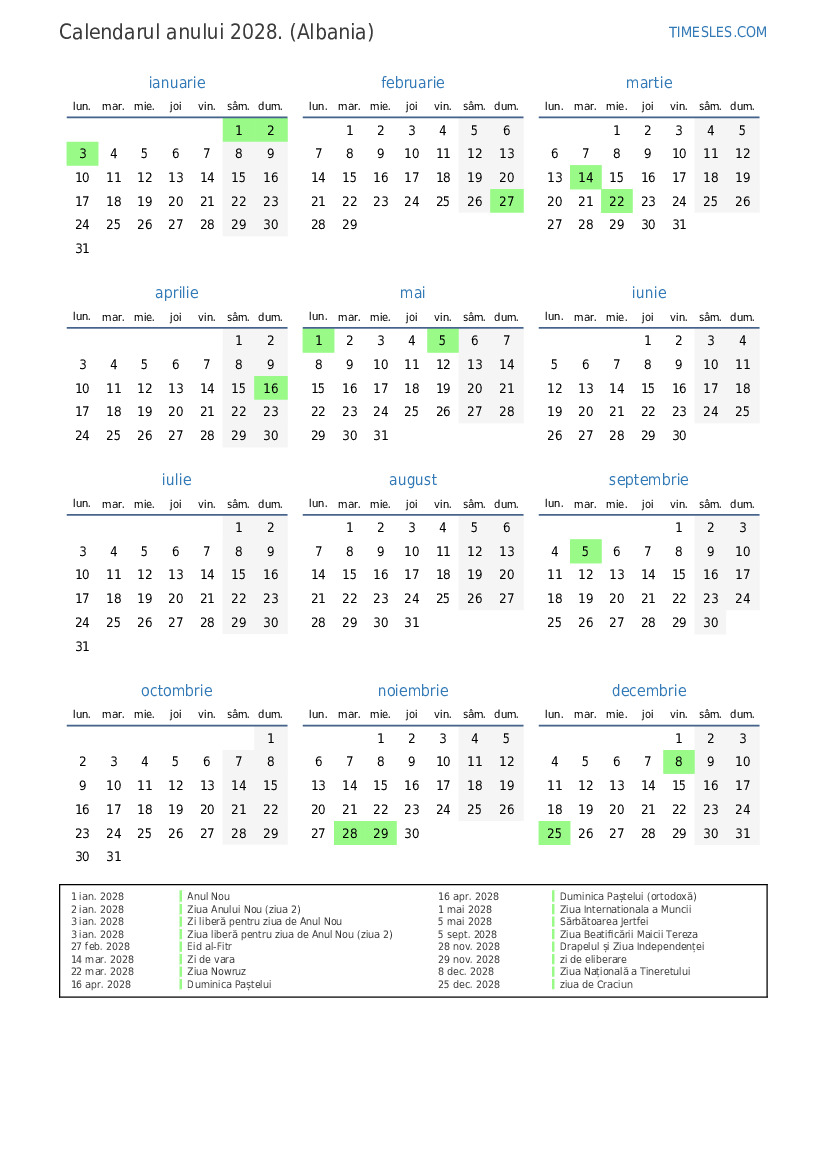3 ian. 2028 Ziua liberă pentru ziua de Anul Nou (ziua 2)