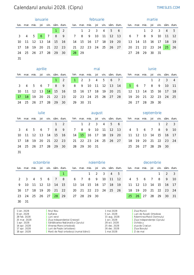 1 oct. 2028 Ziua Independenței Ciprului