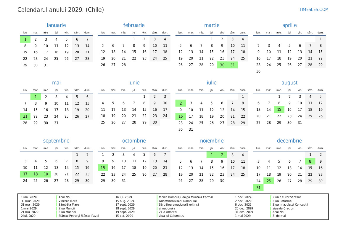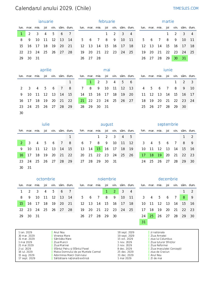 17 sept. 2029 Sărbătoare națională extinsă