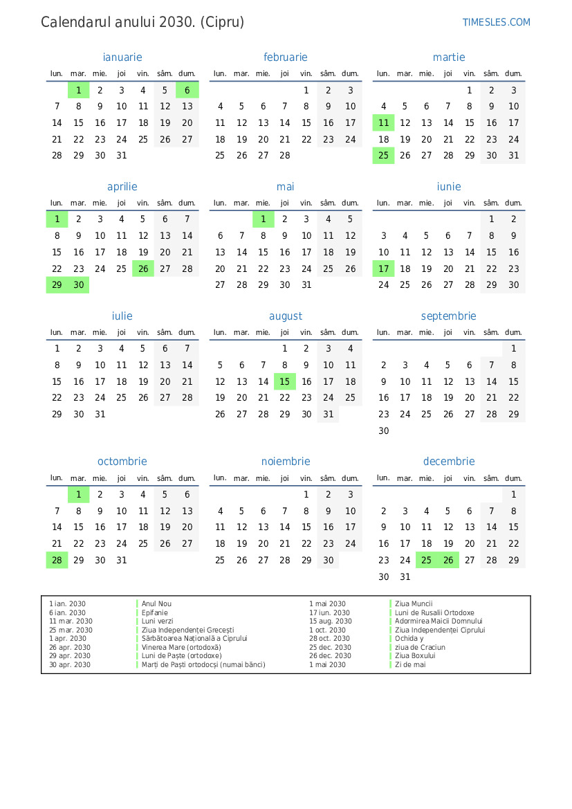 29 apr. 2030 Luni de Paște (ortodoxe)