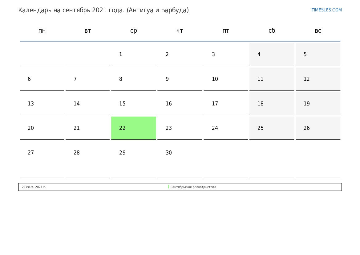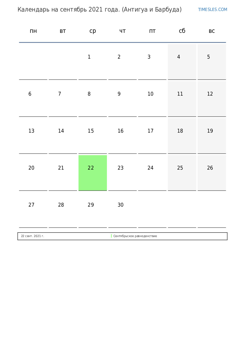 Календарь на сентябрь 2021 года для Антигуа и Барбуды