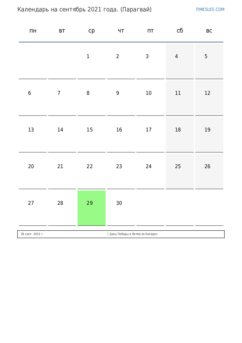 Календарь праздников и выходных дней на сентябрь 2021 года для Парагвая