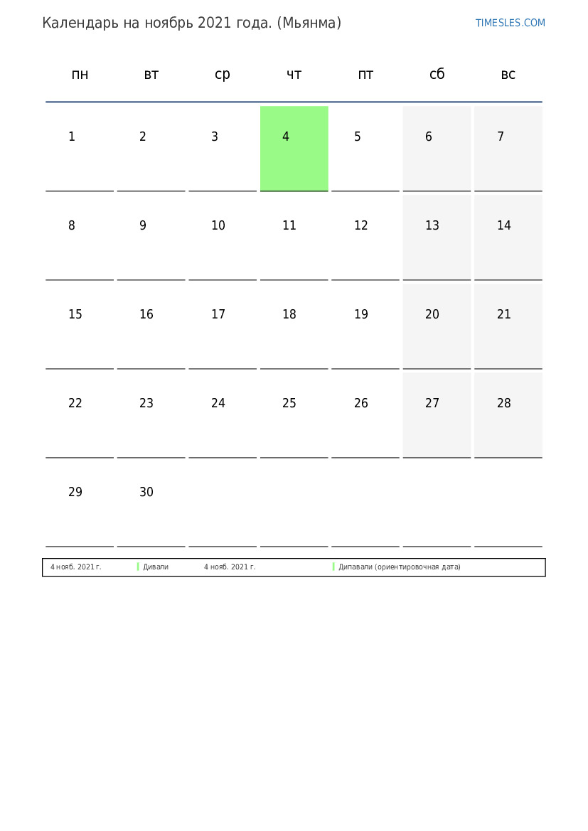 Календарь праздников и выходных дней на ноябрь 2021 года для Мьянмы