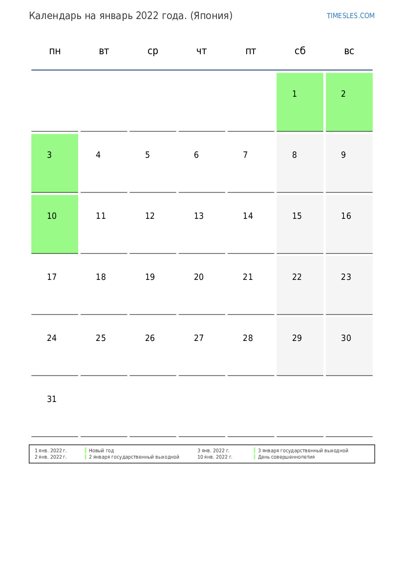 Календарь праздников и выходных дней на март 2022 года для Японии