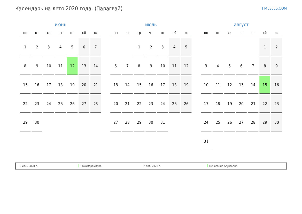Календарь праздников и выходных дней на лето 2020 года для Парагвая