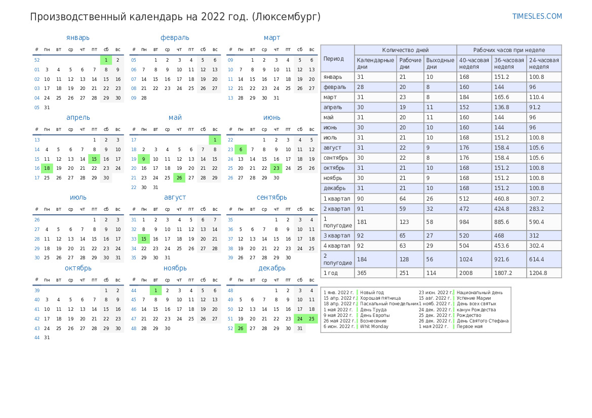 Календарь рабочих дней на август 2022 года для Люксембурга