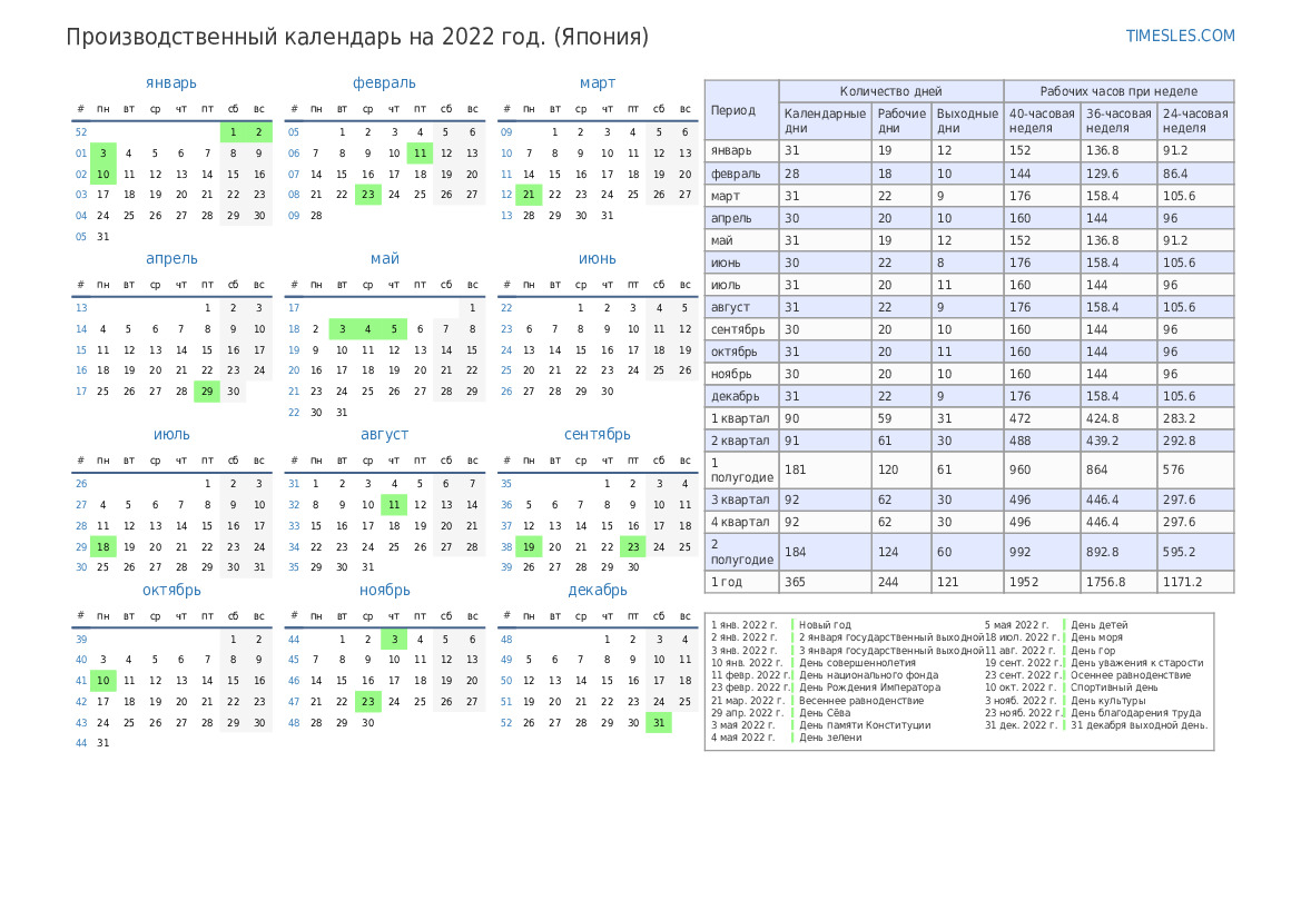 | Календарные дни | 365 |