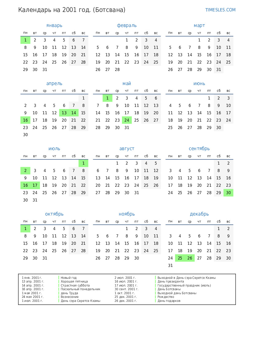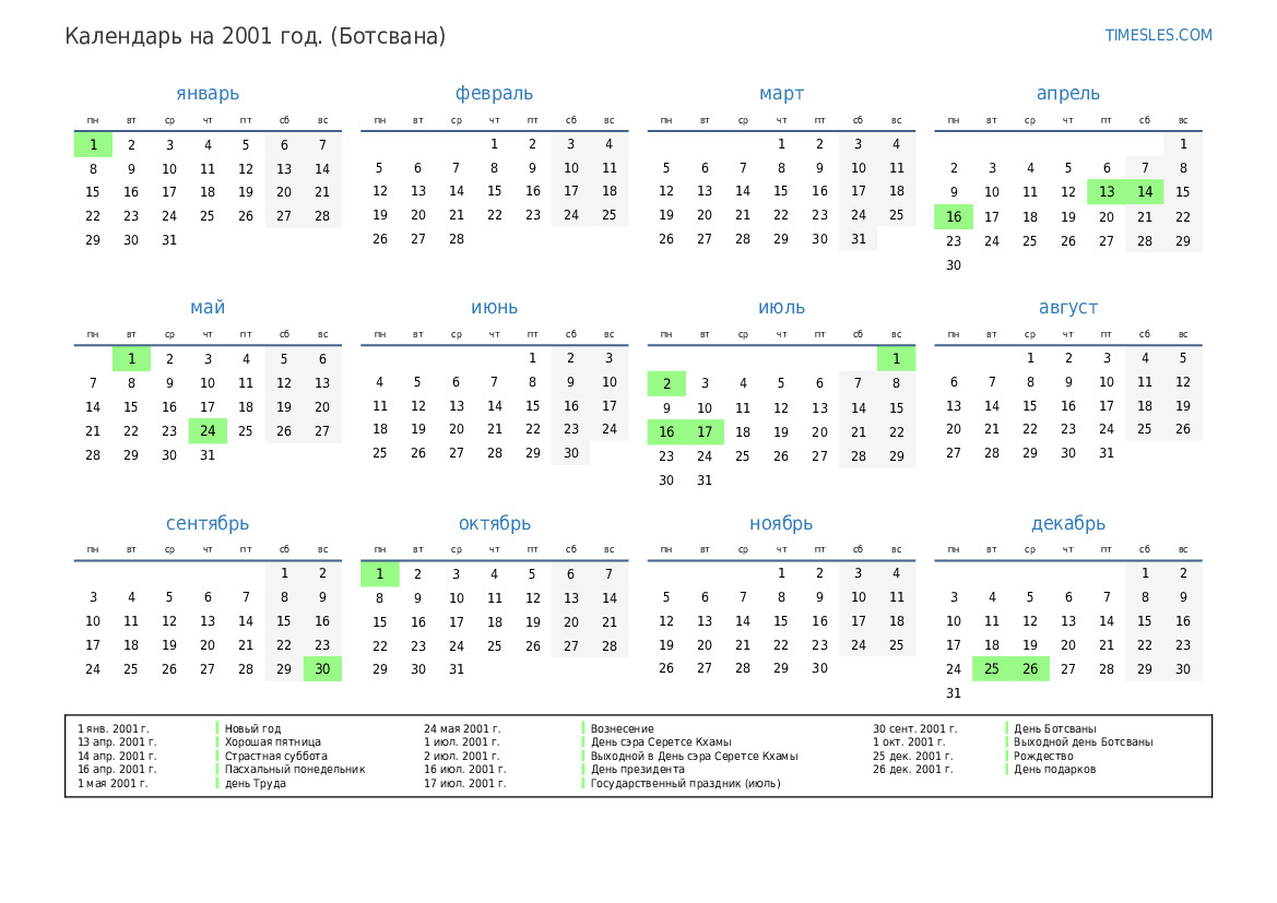 2 июл. 2001 г. Выходной в День сэра Серетсе Кхамы