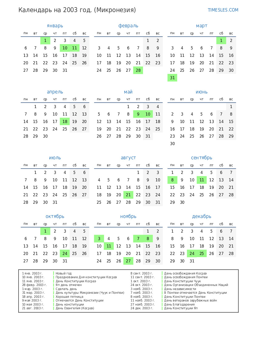 1 окт. 2003 г. День Конституции Чуук