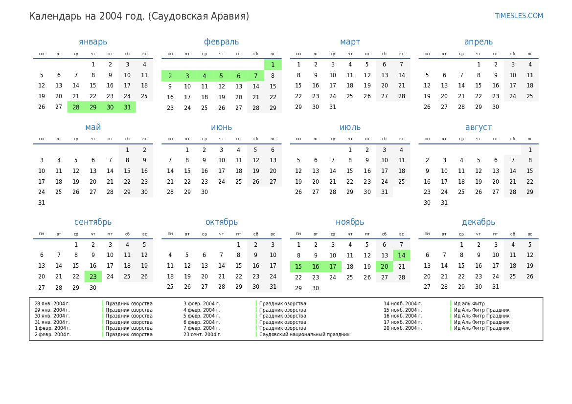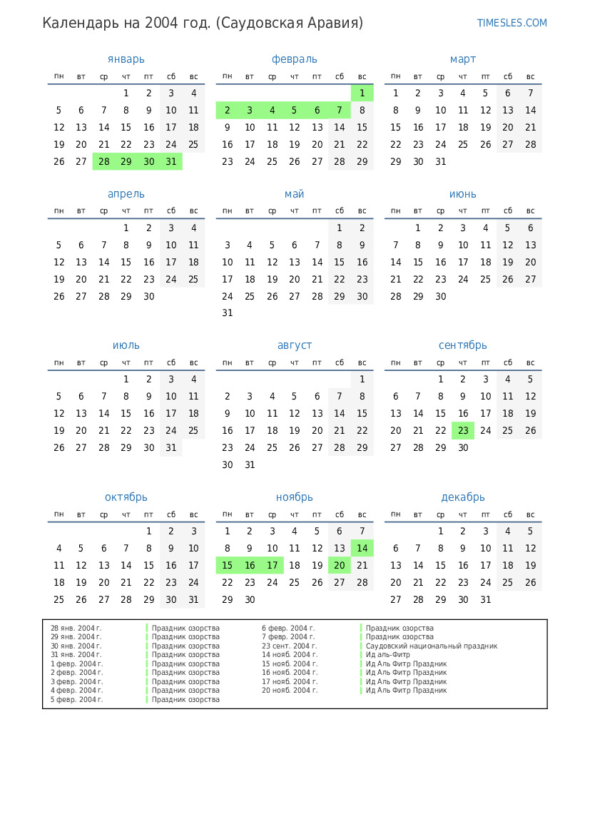 19 нояб. 2004 г. Праздник Ид аль-Фитр (только государственный сектор)