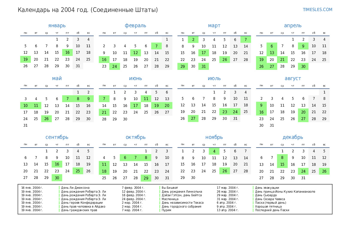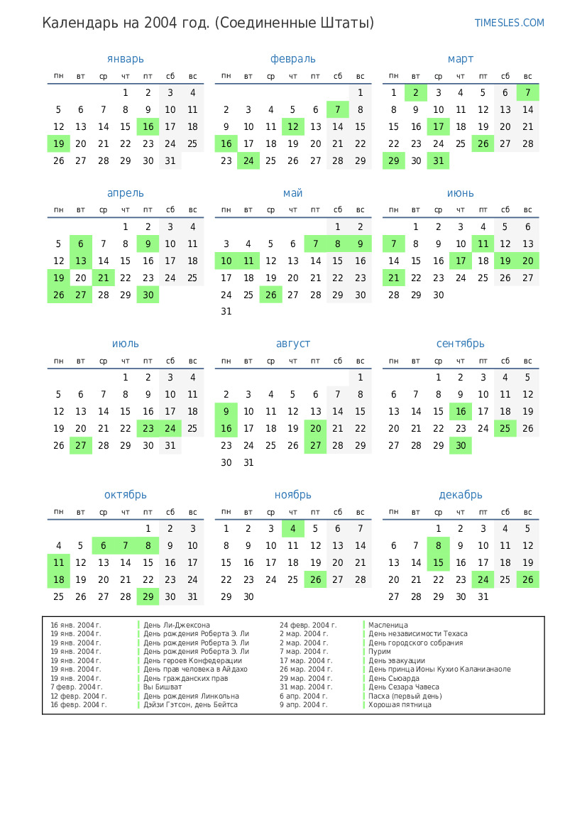 2 нояб. 2004 г. День выборов (всеобщие выборы)
