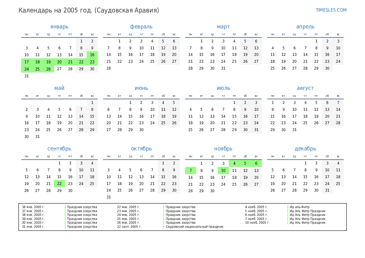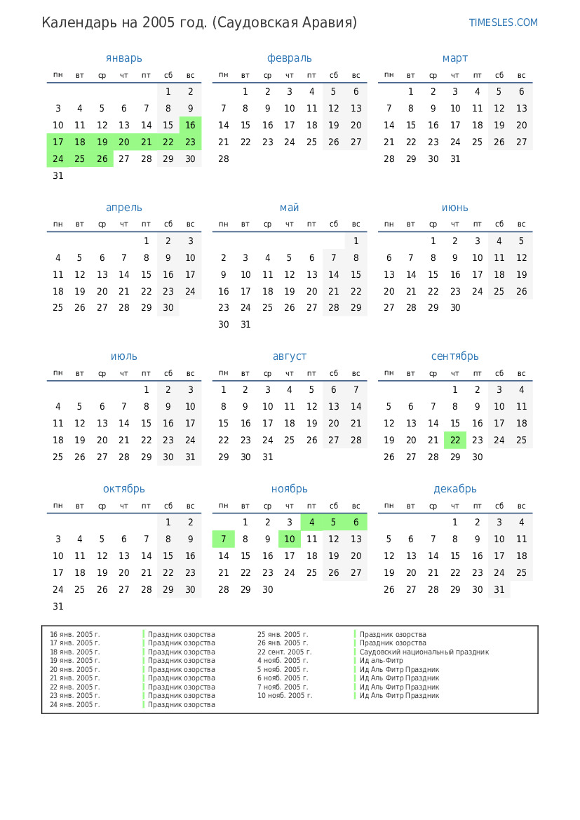 8 нояб. 2005 г. Праздник Ид аль-Фитр (только государственный сектор)
