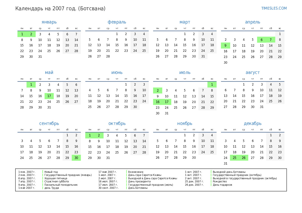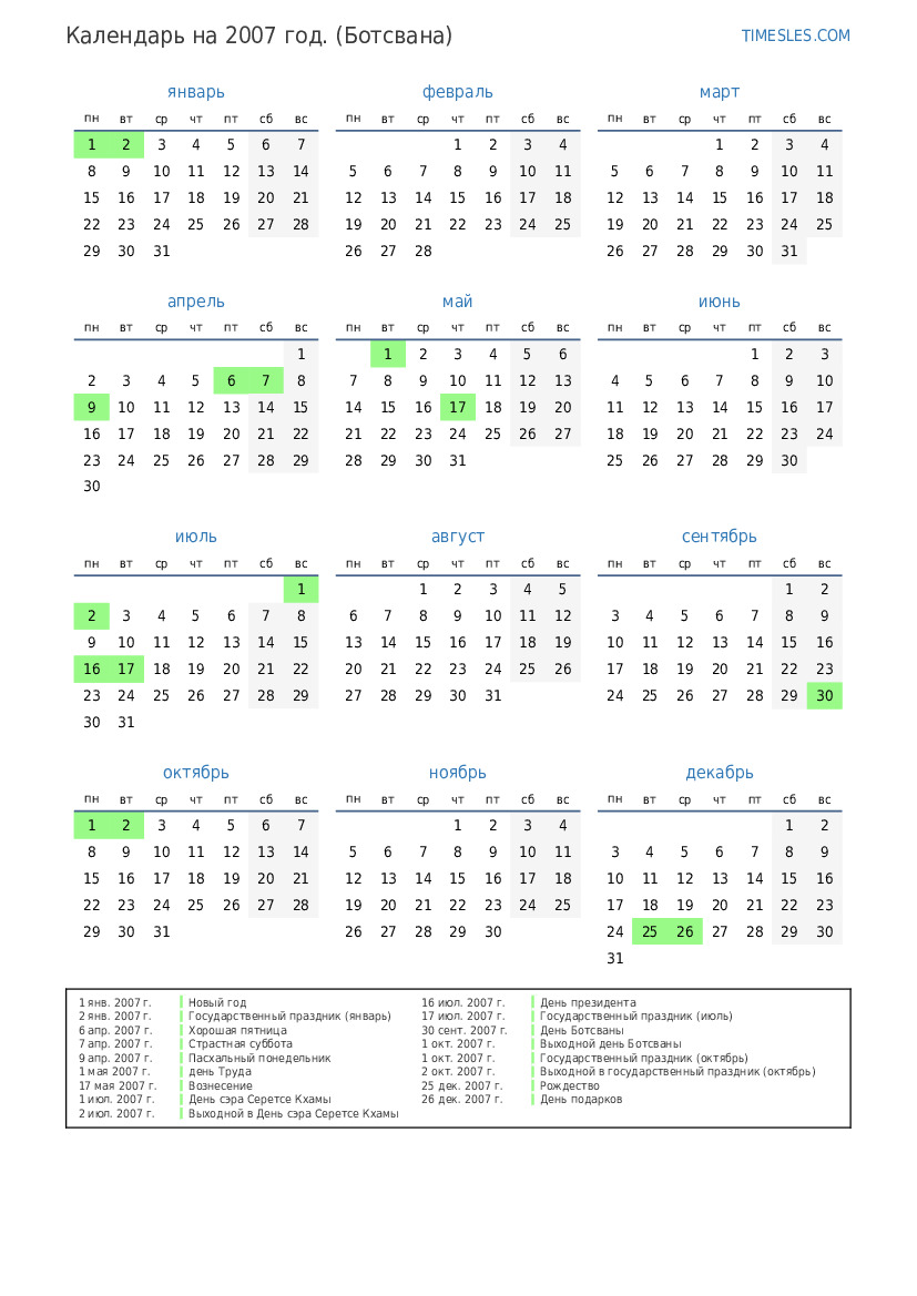 1 окт. 2007 г. Выходной день Ботсваны