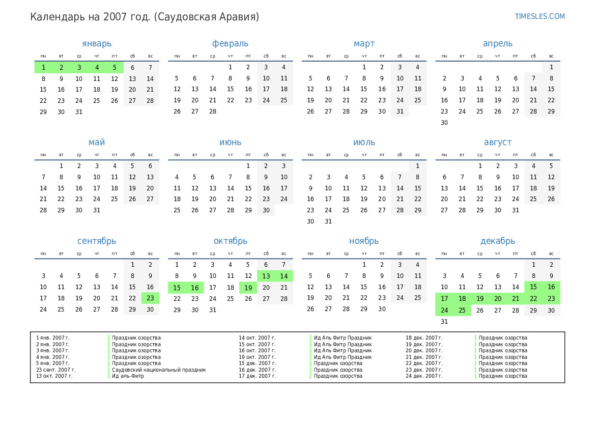 18 окт. 2007 г. Праздник Ид аль-Фитр (только государственный сектор)