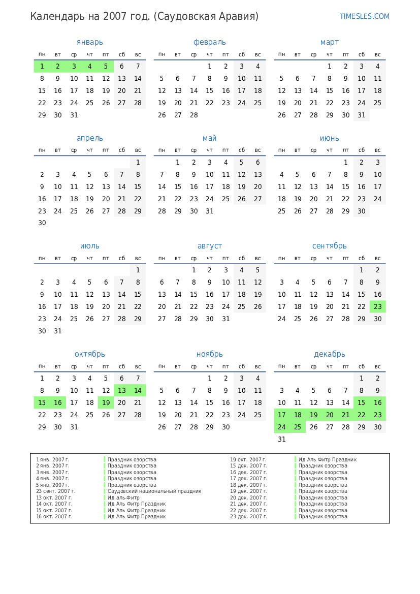 17 окт. 2007 г. Праздник Ид аль-Фитр (только государственный сектор)