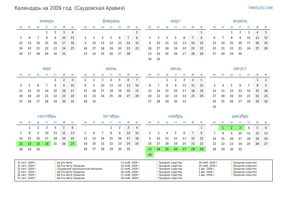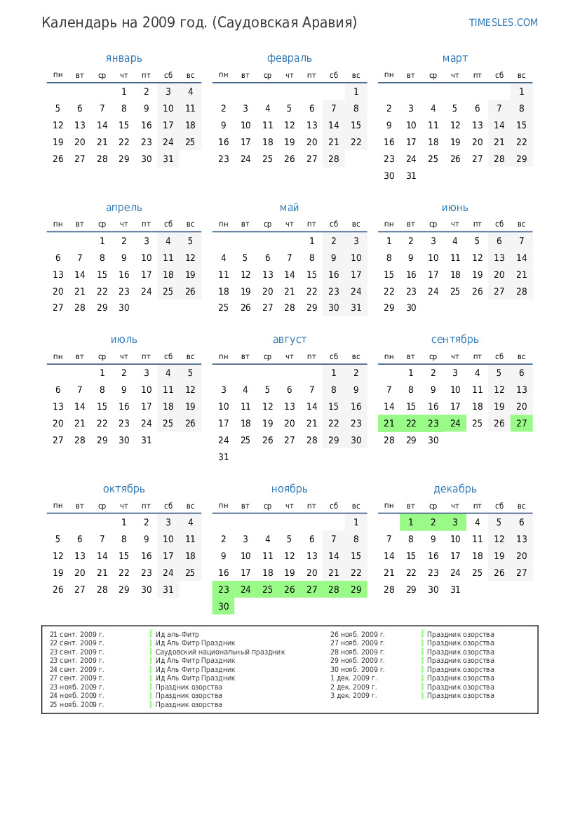 25 сент. 2009 г. Праздник Ид аль-Фитр (только государственный сектор)
