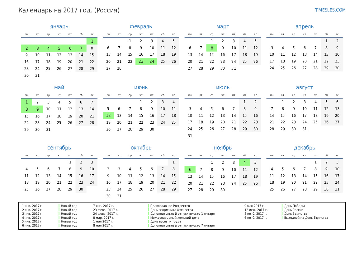 8 мая 2017 г. Дополнительный отпуск вместо 7 января