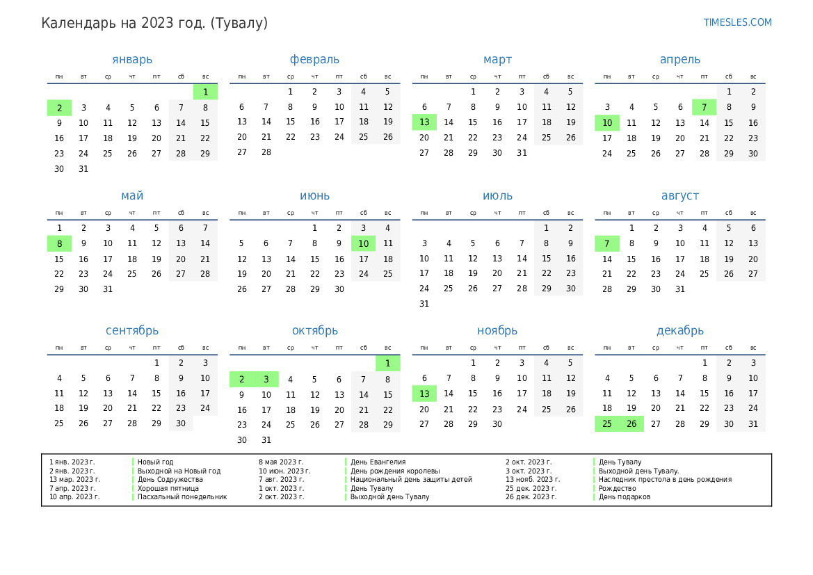 3 окт. 2023 г. Выходной день Тувалу.