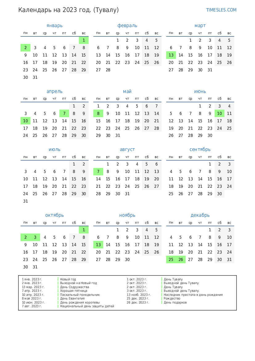2 окт. 2023 г. Выходной день Тувалу