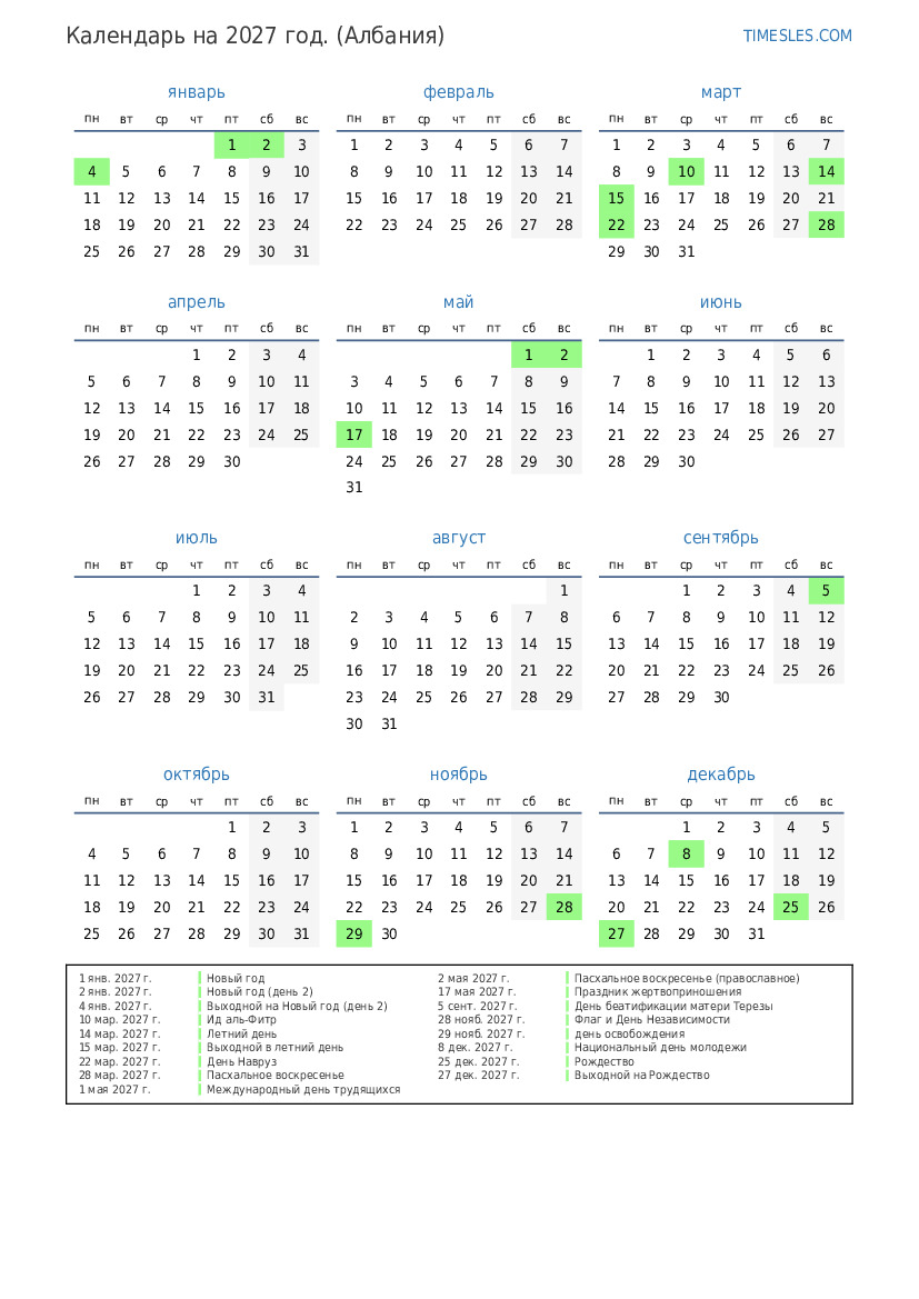 4 янв. 2027 г. Выходной на Новый год (день 2)