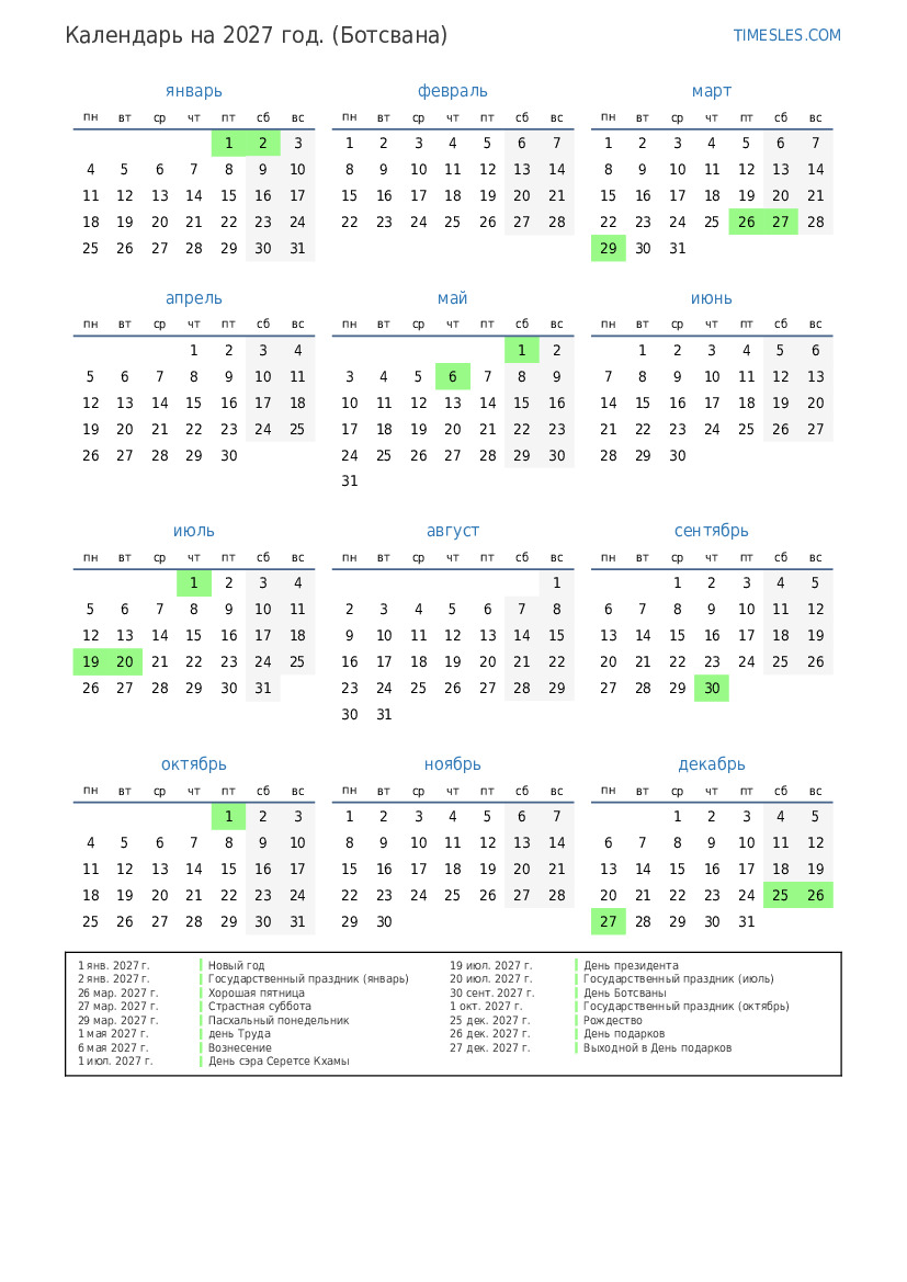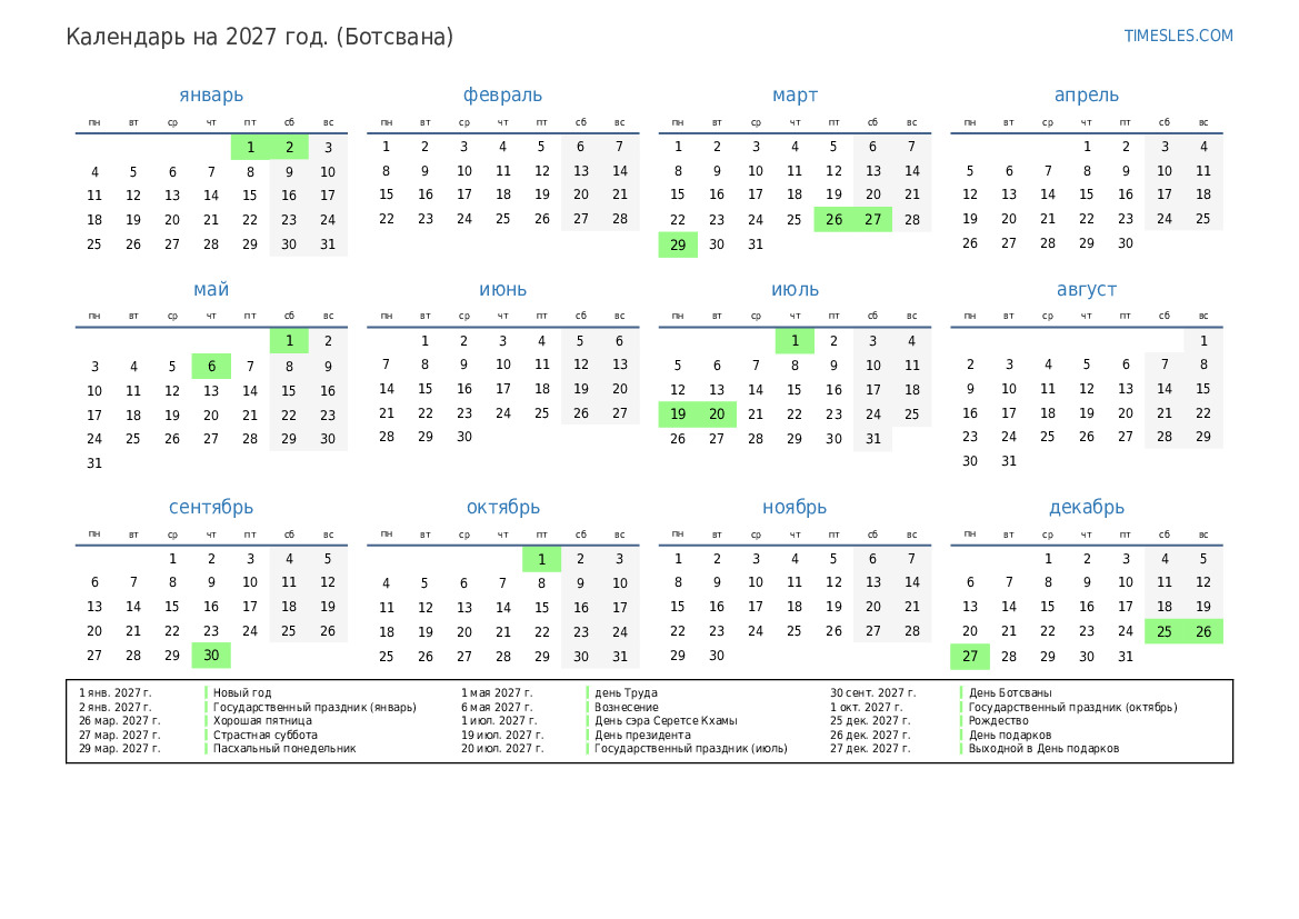 30 сент. 2027 г. День Ботсваны
