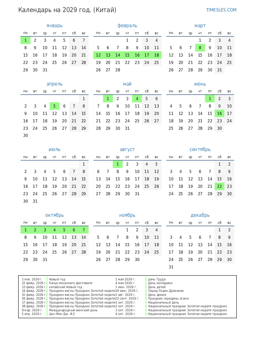 13 февр. 2029 г. китайский Новый год