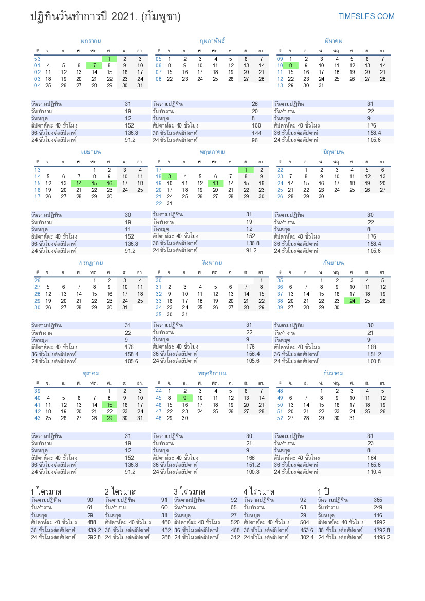 ปฏิทินไตรมาสที่ 3 ปี 2021 สำหรับกัมพูชา