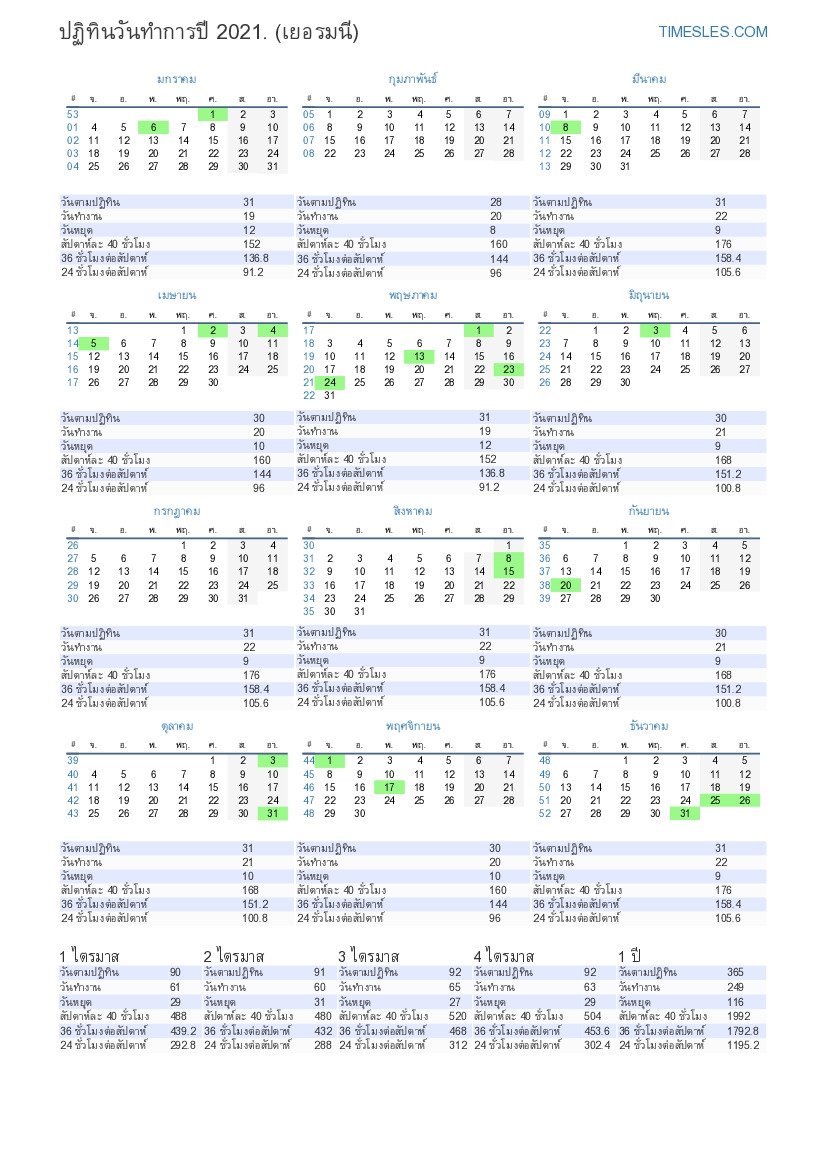 ปฏิทินวันทำการพร้อมวันหยุดและวันหยุดสุดสัปดาห์สำหรับไตรมาสที่ 3 ของปี 2021 สำหรับเยอรมนี
