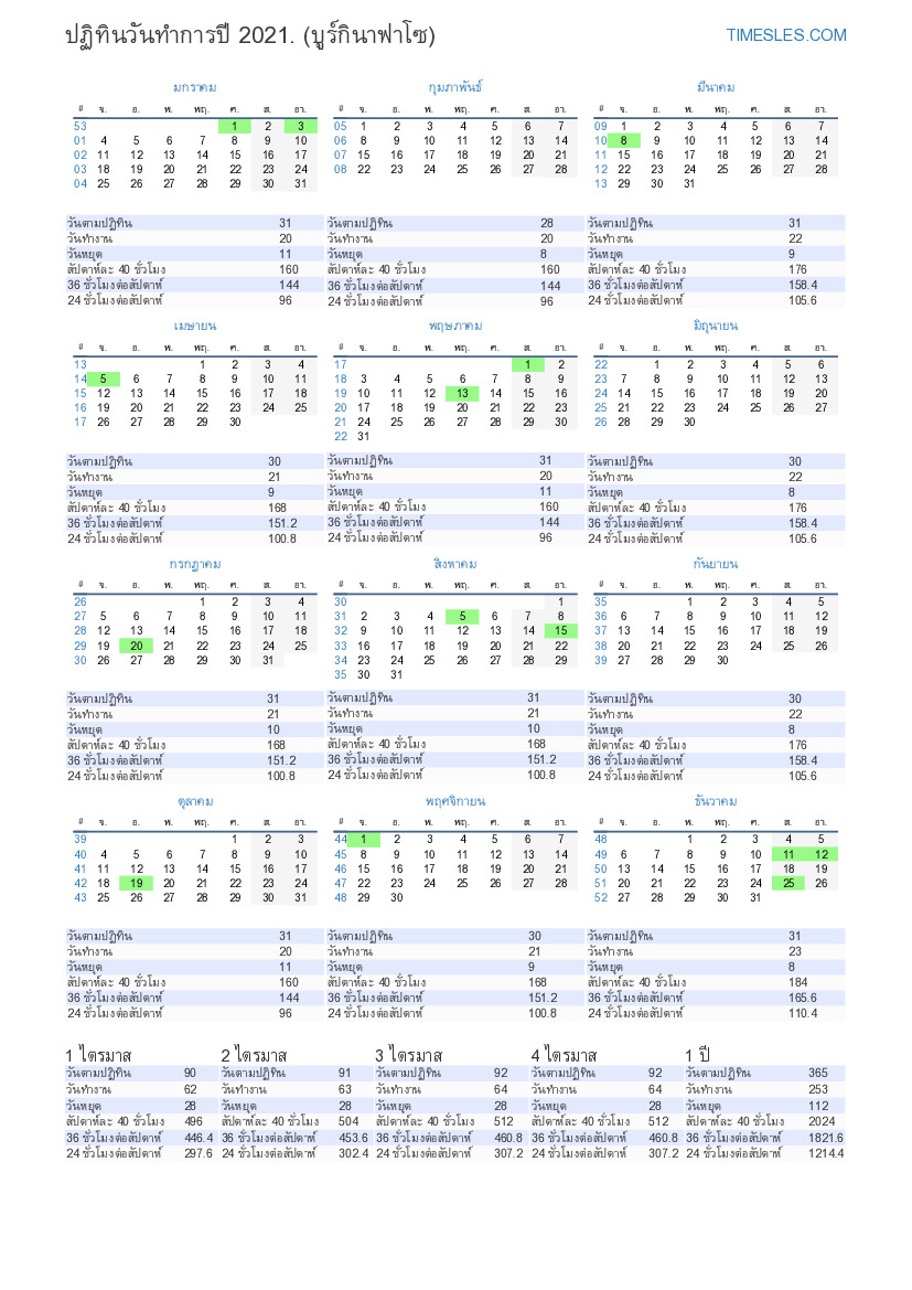 ดาวน์โหลดและพิมพ์ปฏิทินวันทำการในรูปแบบ PDF พร้อมวันหยุดและวันหยุดสุดสัปดาห์สำหรับไตรมาสที่ 4 ของปี 2021 สำหรับบูร์กินาฟาโซ