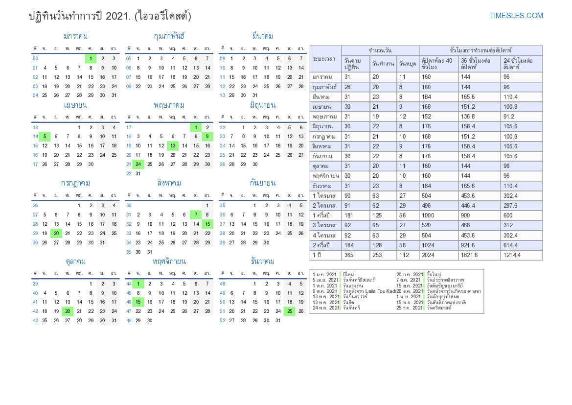 ปฏิทินวันทำการ