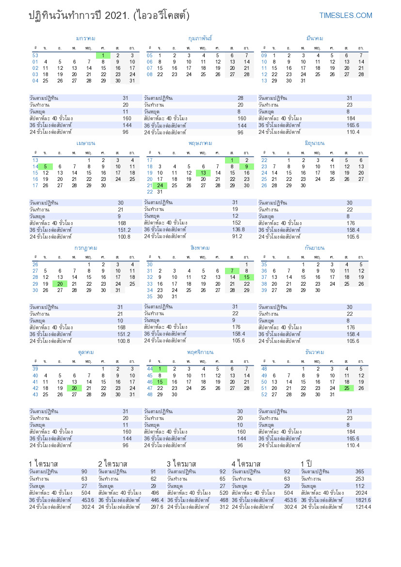 ปฏิทินธุรกิจแนวตั้งสำหรับปีพ