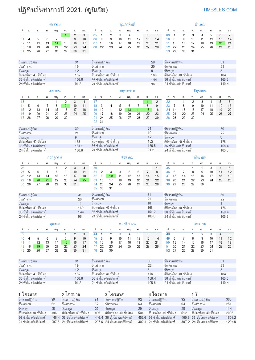 ปฏิทินพร้อมหมายเลขสัปดาห์