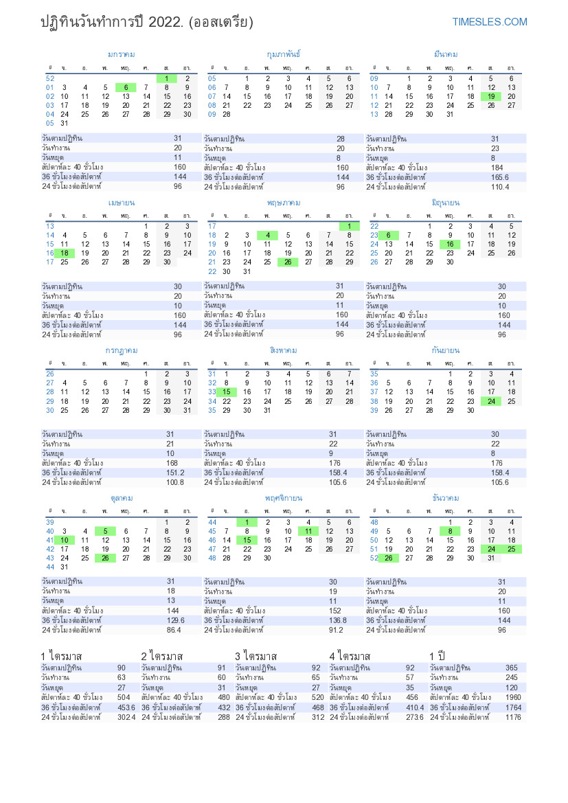 สำหรับไตรมาสที่ 1 ของปี 2022 5 วันหยุดและวันหยุดในออสเตรีย ไตรมาสที่ 1 ปี 2022 เริ่มในวันที่ วันเสาร์และสิ้นสุดในวันที่ ในวันพฤหัสบดีที่