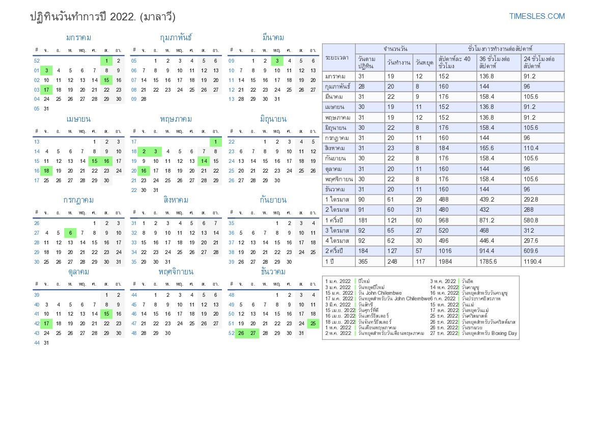 ดาวน์โหลดและพิมพ์ปฏิทินวันทำการในรูปแบบ PDF พร้อมวันหยุดและวันหยุดสุดสัปดาห์สำหรับไตรมาสที่ 2 ของปี 2022 สำหรับมาลาวี