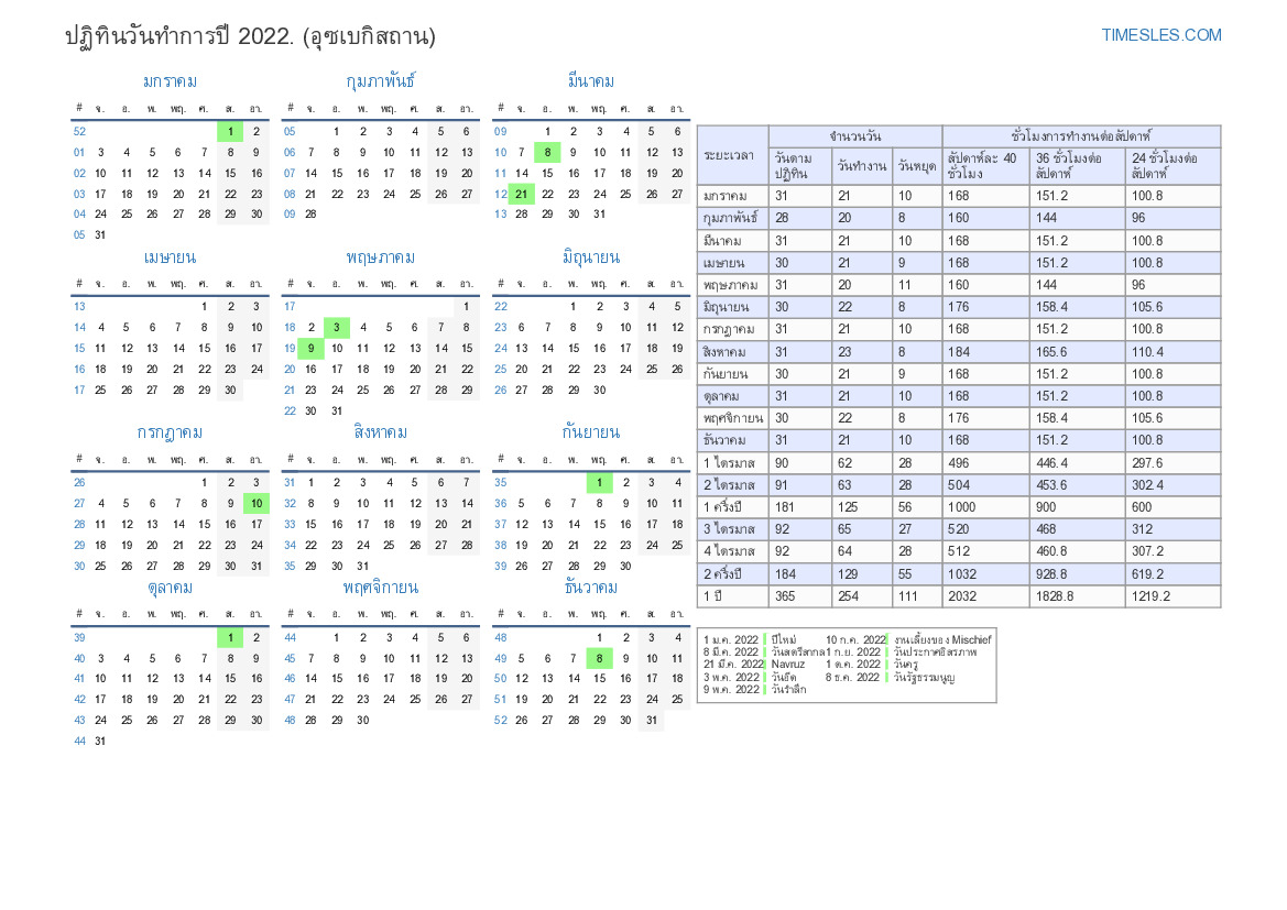 ดาวน์โหลดและพิมพ์ปฏิทินวันทำการในรูปแบบ PDF พร้อมวันหยุดและวันหยุดสุดสัปดาห์สำหรับไตรมาสที่ 4 ของปี 2022 สำหรับอุซเบกิสถาน