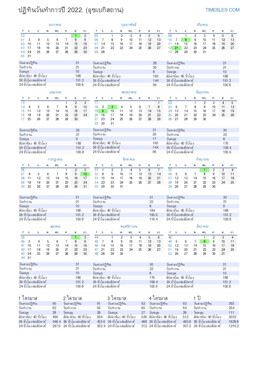 ปฏิทินวันทำการพร้อมวันหยุดและวันหยุดสุดสัปดาห์สำหรับไตรมาสที่ 4 ของปี 2022 สำหรับอุซเบกิสถาน