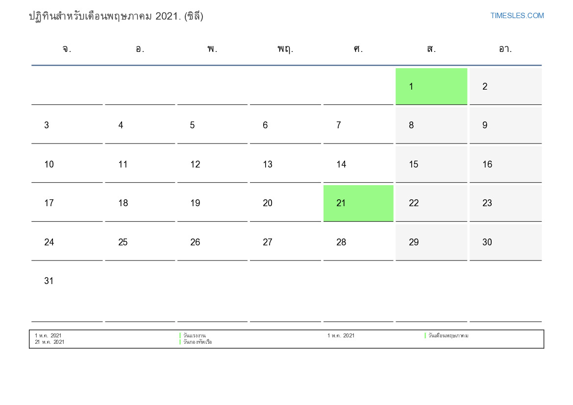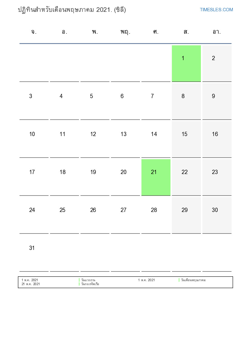 1 พ.ค. 2021 วันเดือนพฤษภาคม