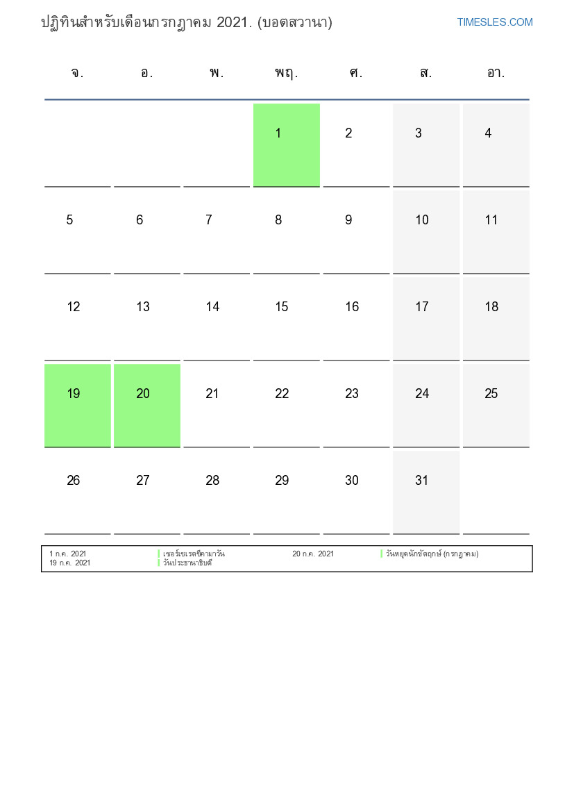 20 ก.ค. 2021 วันหยุดนักขัตฤกษ์ (กรกฎาคม)