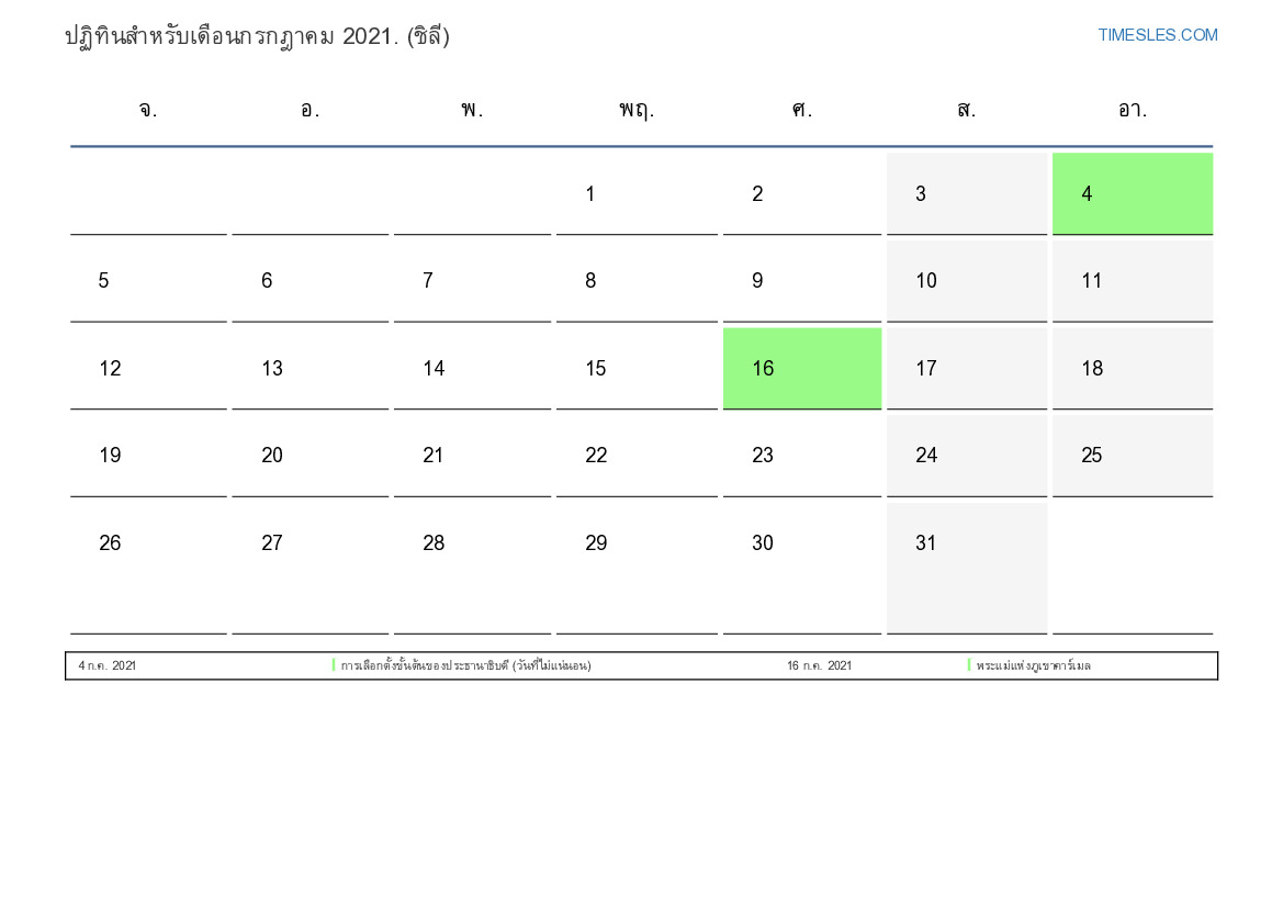ดาวน์โหลดและพิมพ์ปฏิทิน PDF พร้อมวันหยุดและวันหยุดสุดสัปดาห์สำหรับเดือนกรกฎาคม 2021 สำหรับชิลี