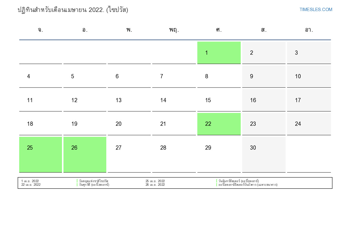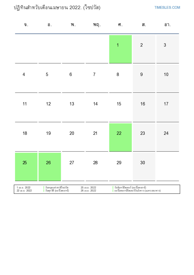 26 เม.ย. 2022 ออร์โธดอกซ์อีสเตอร์วันอังคาร (เฉพาะธนาคาร)