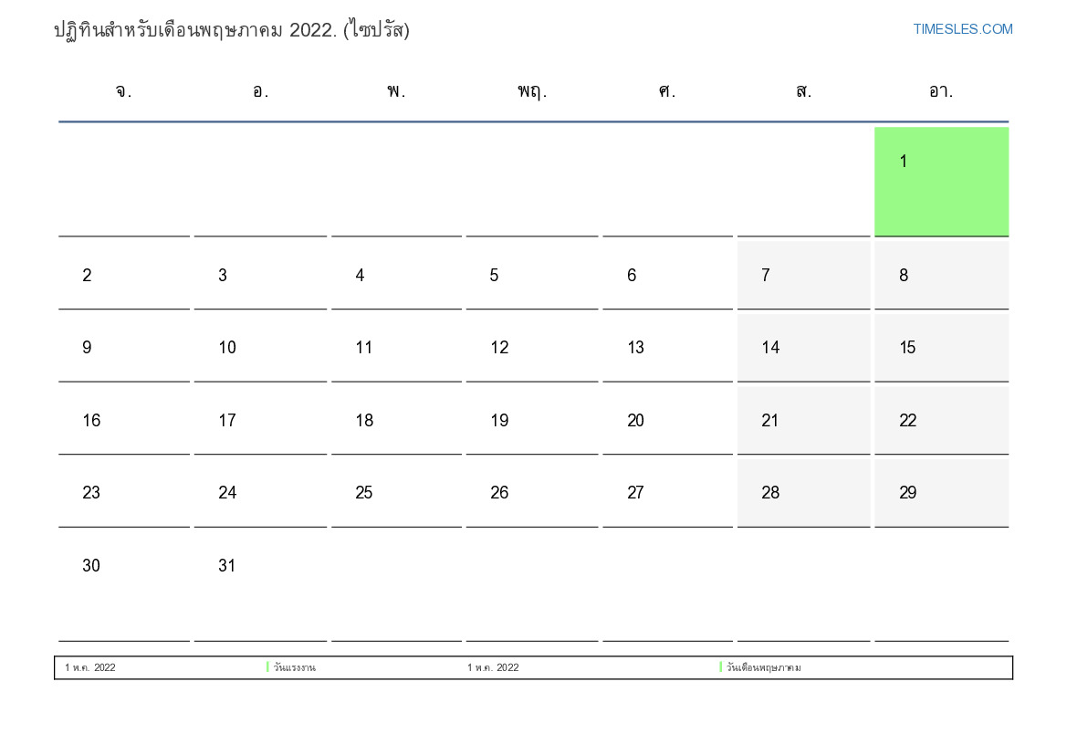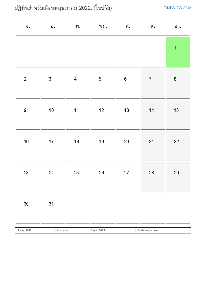 1 พ.ค. 2022 วันเดือนพฤษภาคม