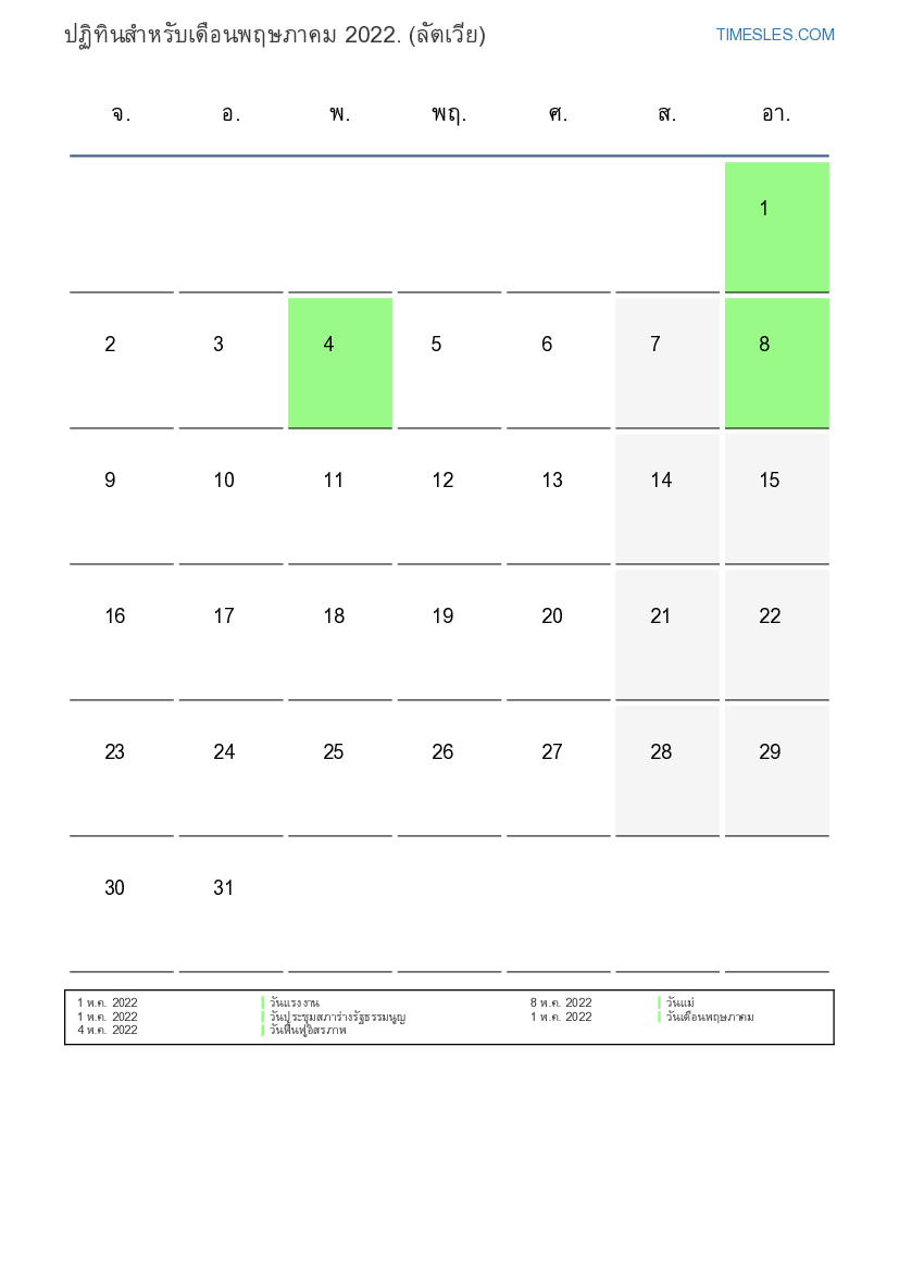 1 พ.ค. 2022 วันเดือนพฤษภาคม