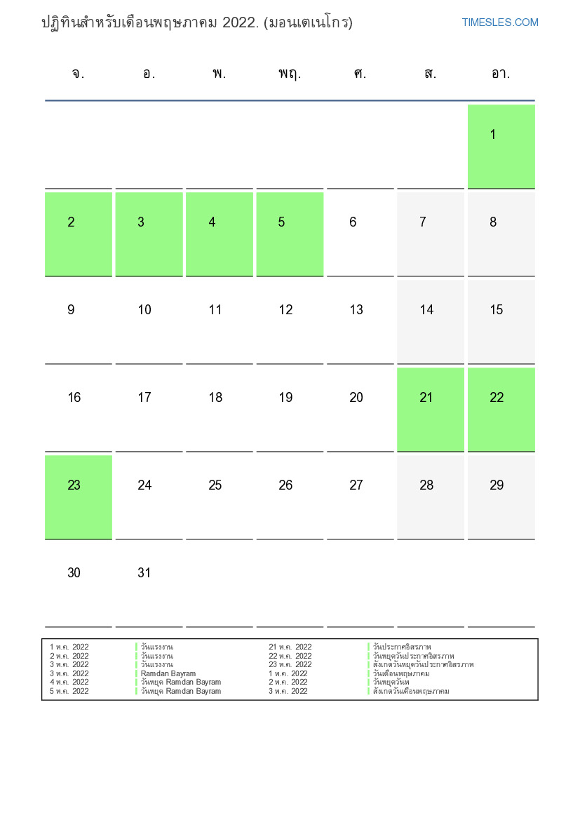 1 พ.ค. 2022 วันเดือนพฤษภาคม