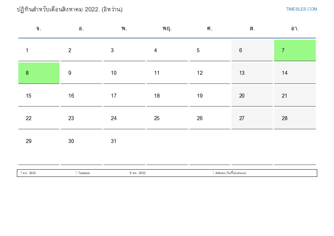 8 ส.ค. 2022 Ashura (วันที่ไม่แน่นอน)