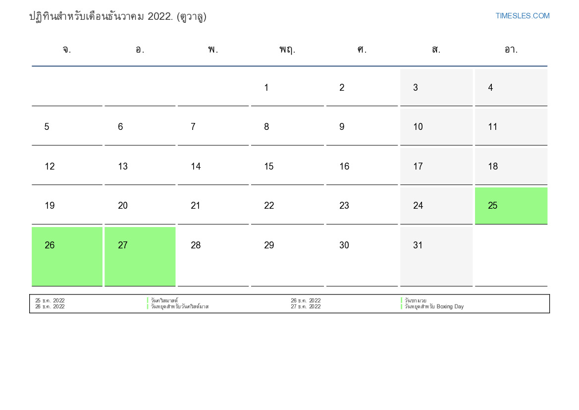 26 ธ.ค. 2022 วันหยุดสำหรับวันคริสต์มาส