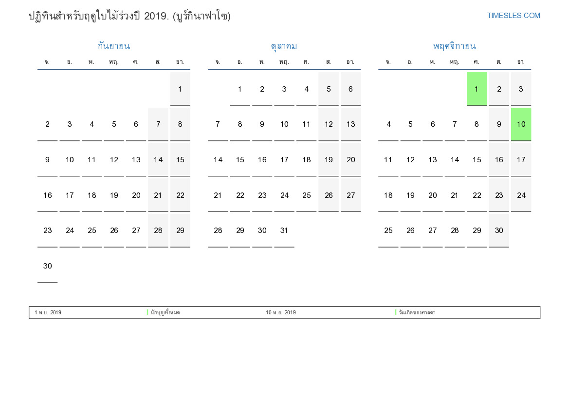 ปฏิทินสำหรับฤดูใบไม้ร่วงปี 2019 สำหรับบูร์กินาฟาโซ