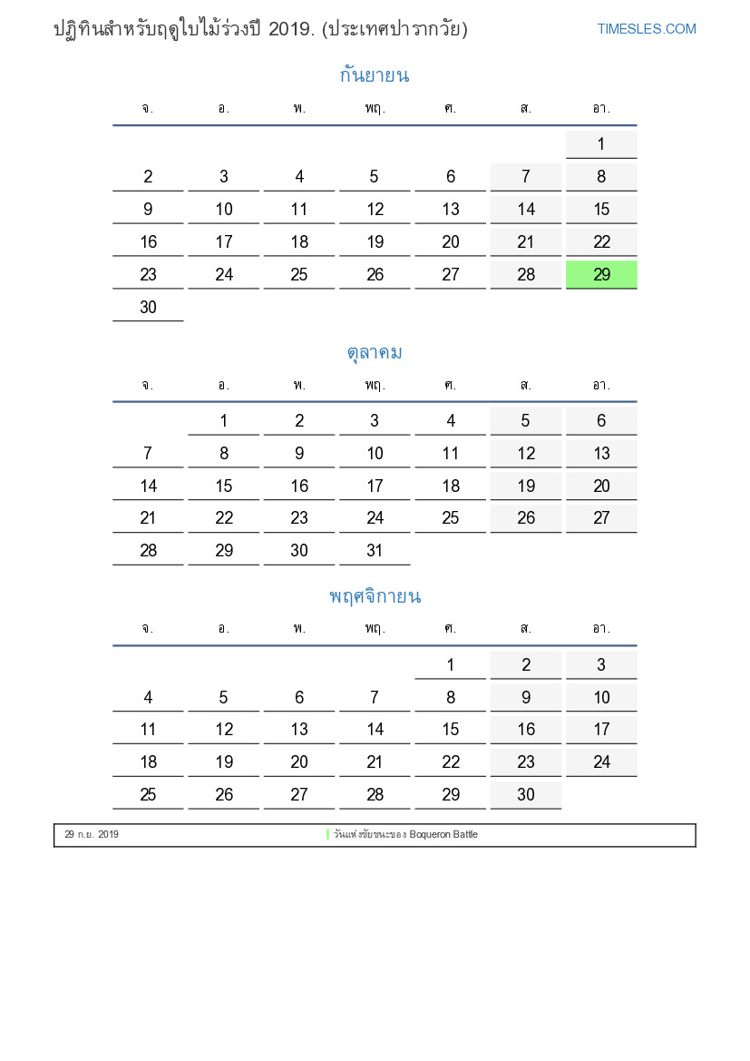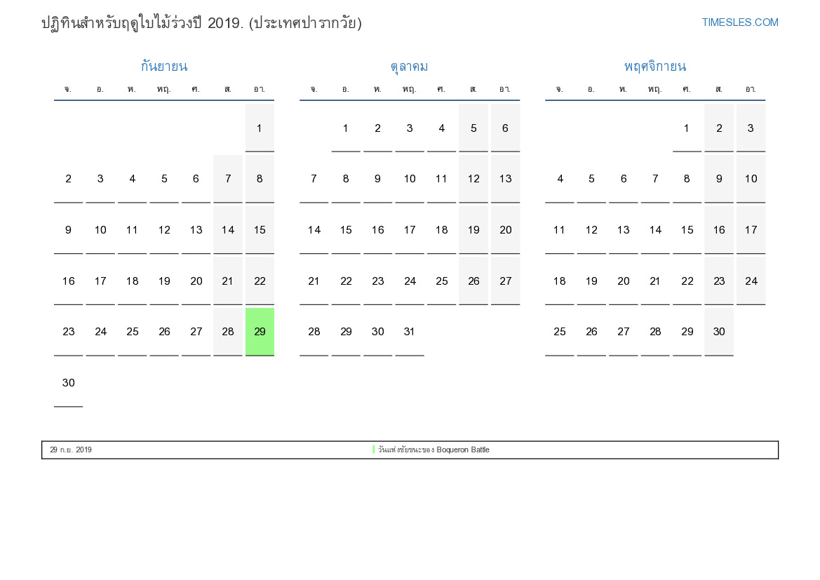 ปฏิทินสำหรับฤดูใบไม้ร่วงปี 2019 สำหรับปารากวัย